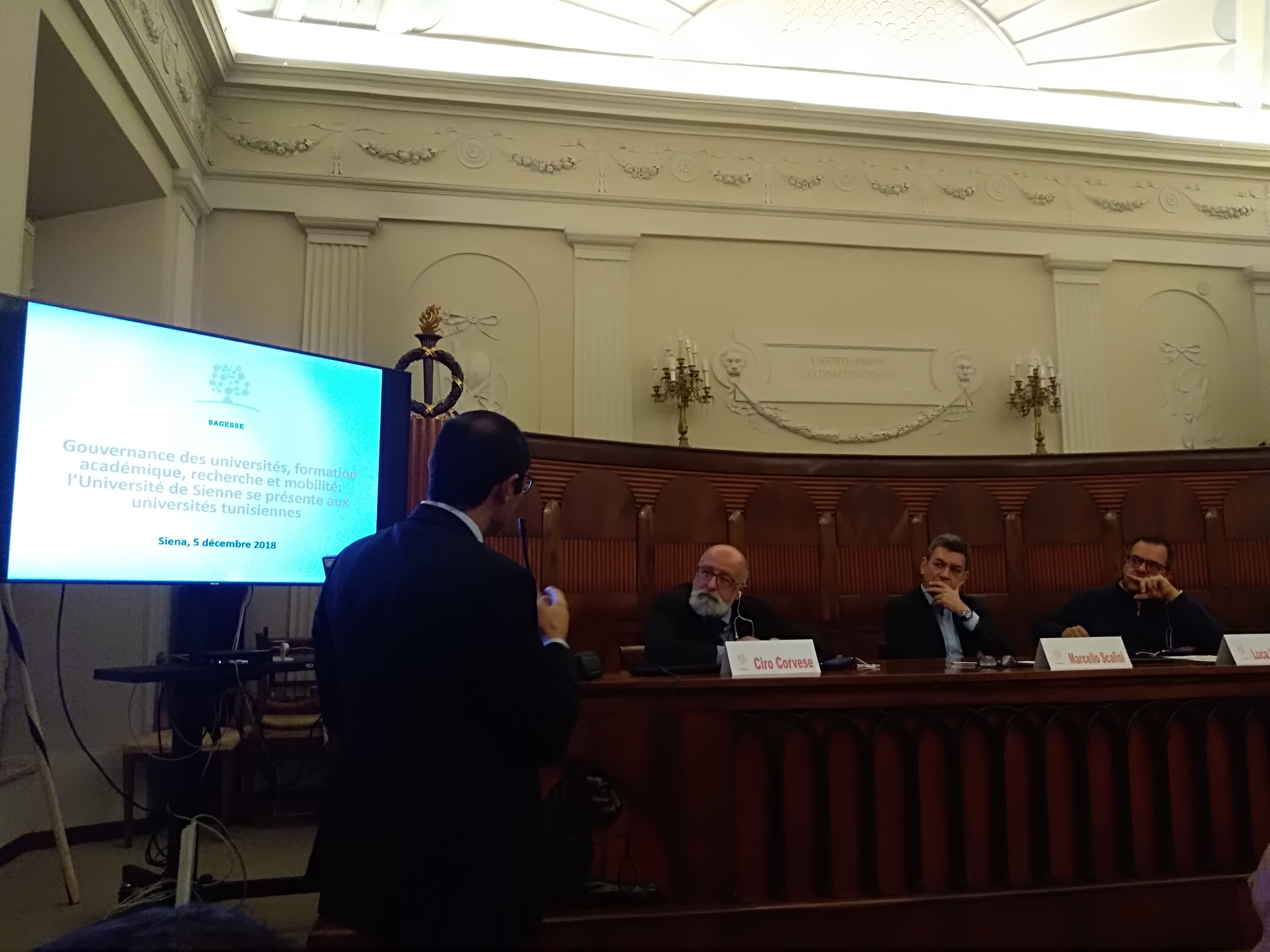 ها قد انتهى تكوين المكونين الذي استضافته جامعة سيانا عقب أسبوع مكثف من التشارك والتعلم. وتم تنفيذ  النشاط ضمن ما أنجزه فريق العمل 2 في إطار مشروع ساجاس، وهو تكوين موجه إلى الموظفين الداخليين في  مؤسسات التعليم العالي التونسي الشريكة، ويهدف إلى الترفيع في مهارات المشاركين في مجال ضمان الجودة  والتخطيط االستراتيجي. وقد تناول مكونون، وخبراء معترف لهم بالقدرة في مجالهم، موضوعات إضافية