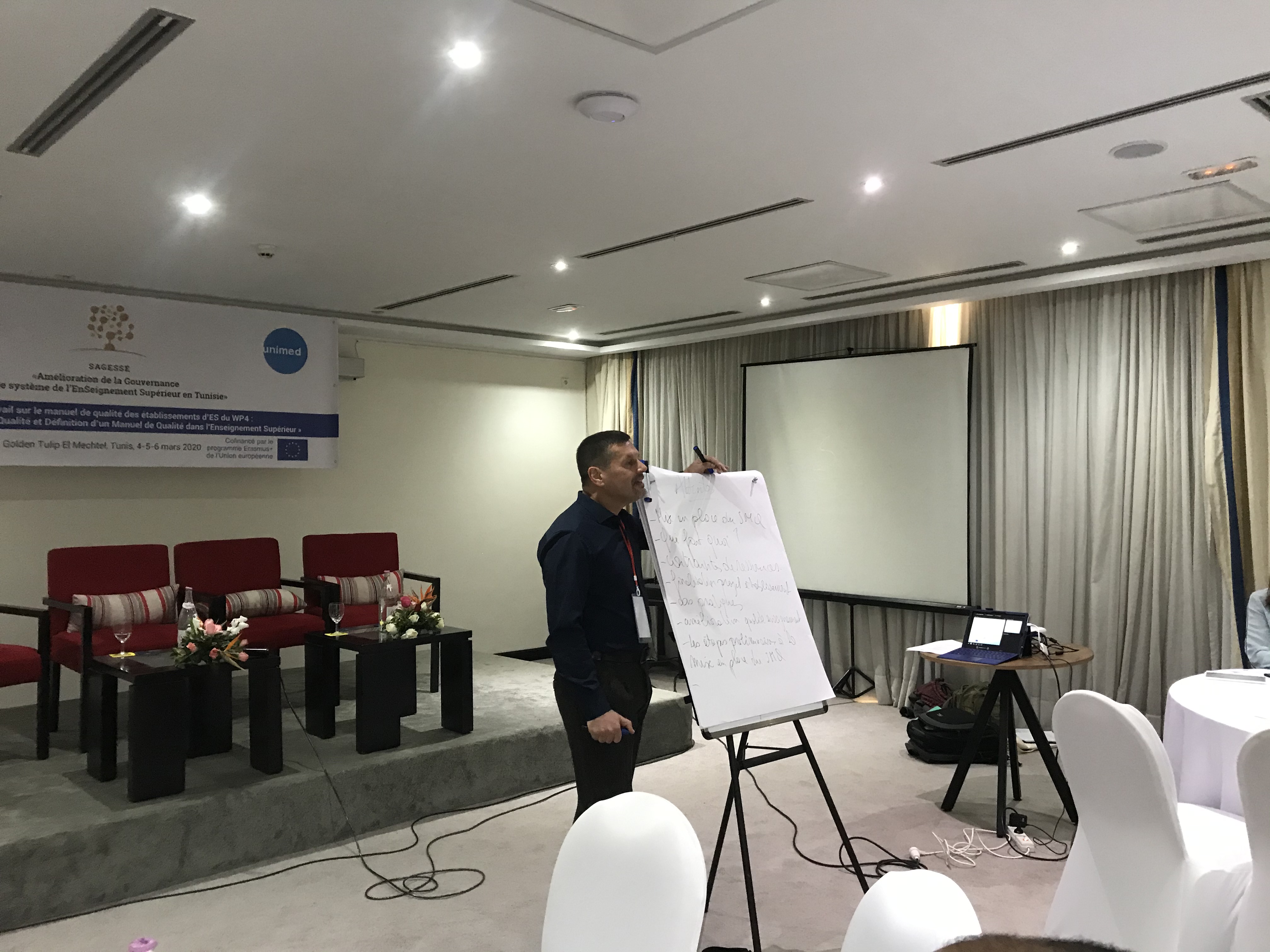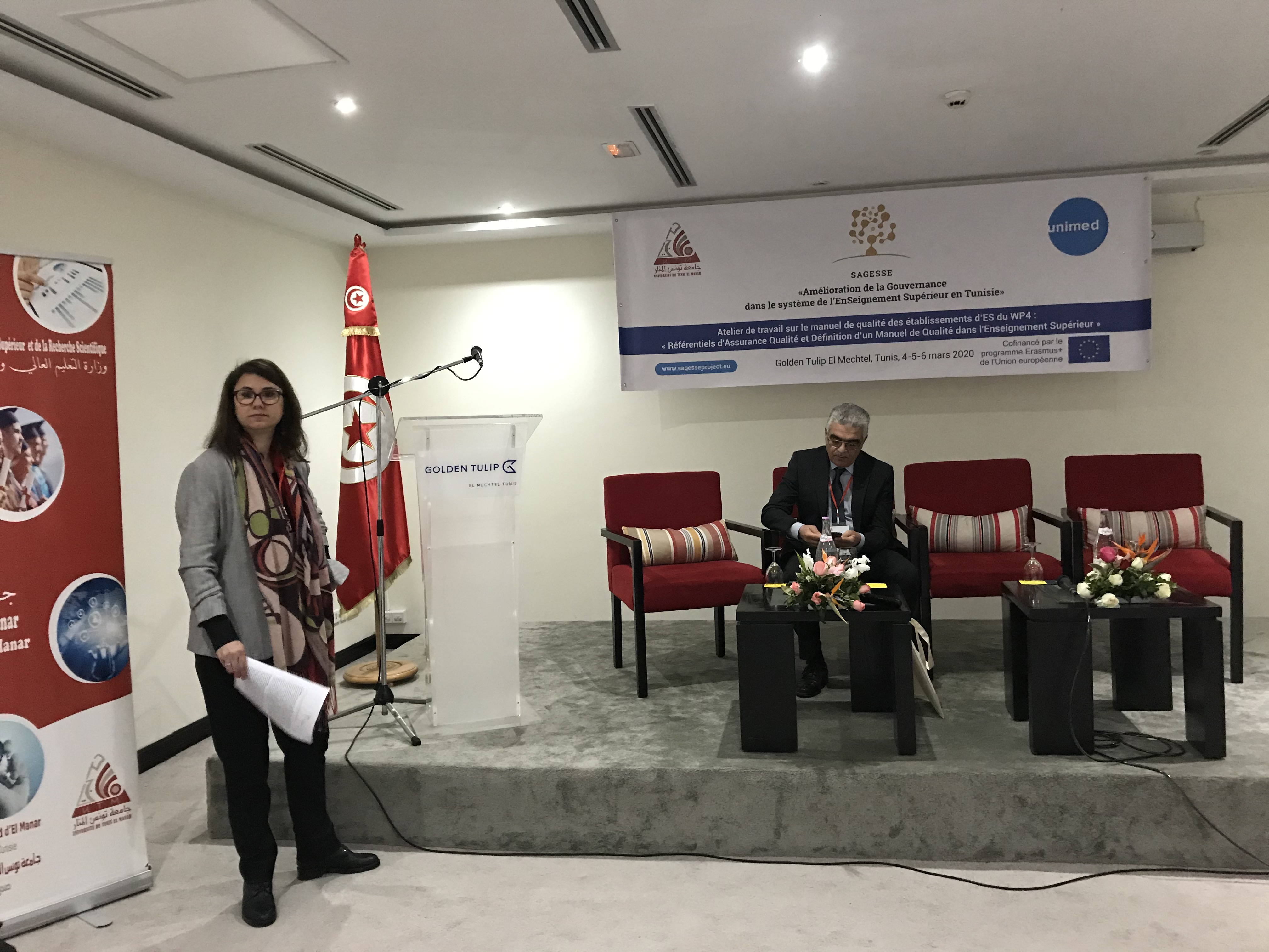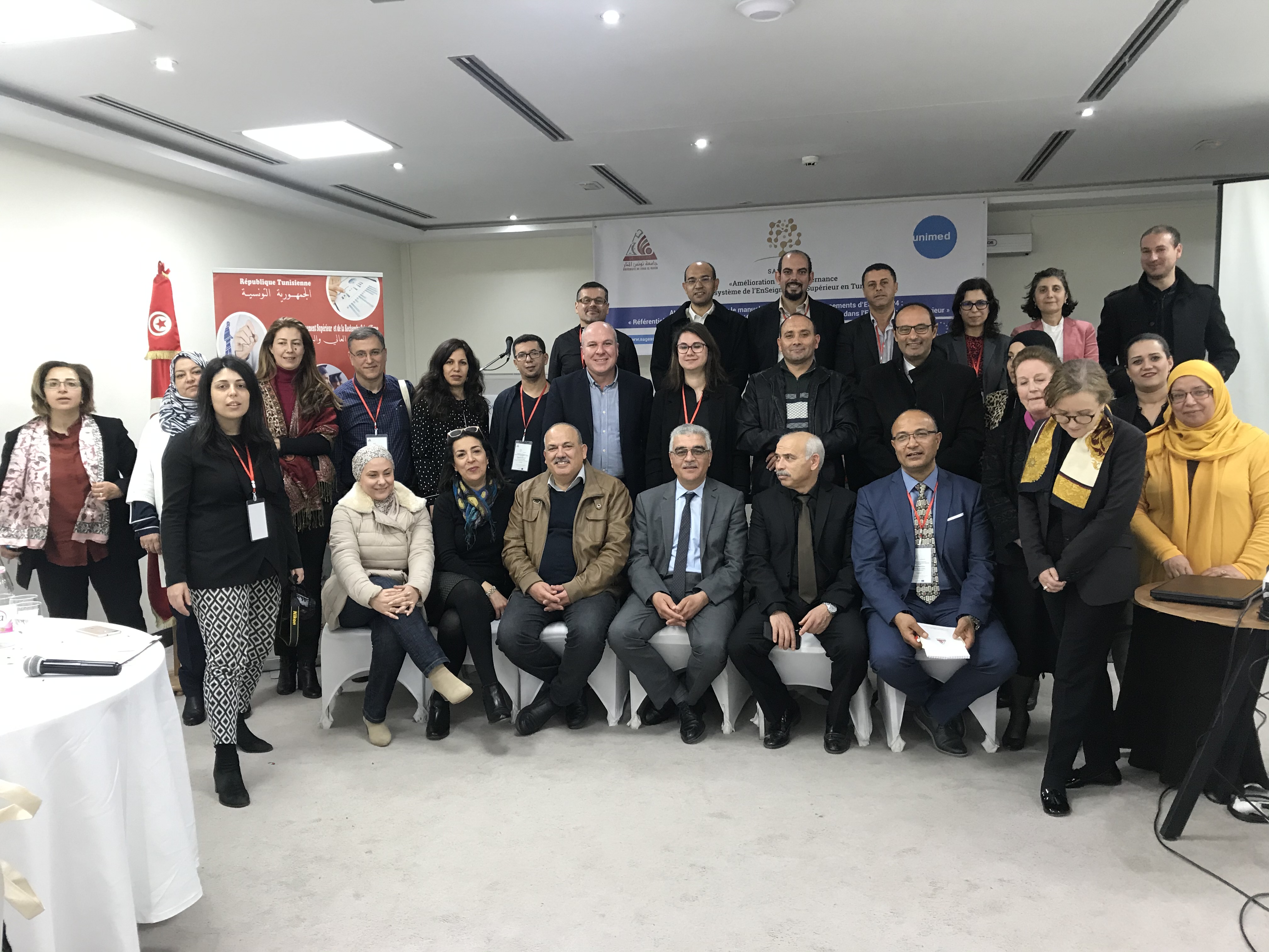 في إطار مشروع ساجاس " تحسين حوكمة نظام التعليم العالي في تونس: نحو االستقاللية الجامعية، ونحو  آليات جديدة لضمان الجودة" انعقدت ورشة عمل حول دليل الجودة لمؤسسات التعليم العالي في تونس من إلى 6 مارس 2020 ،نظمتها جامعة تونس المنار. وكان عنوان الورشة" معايير ضمان الجودة وتعريف دليل