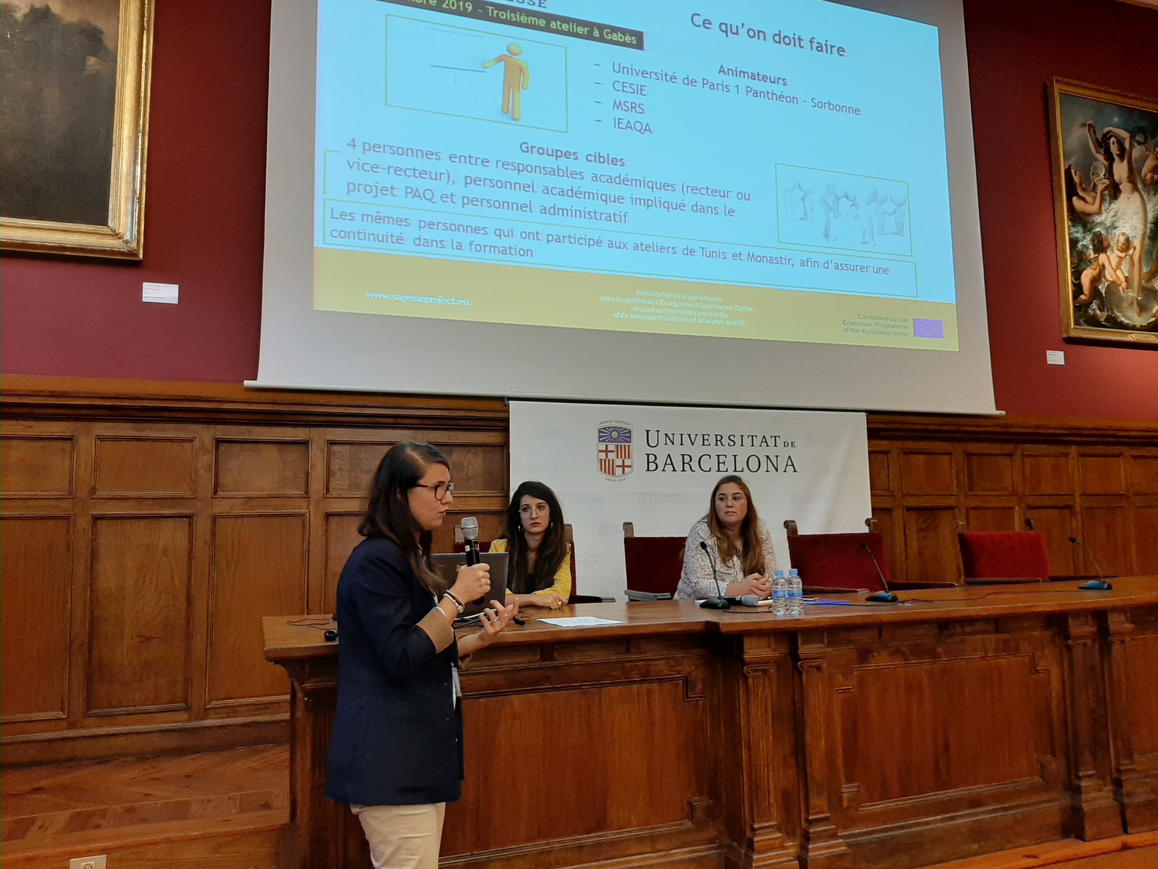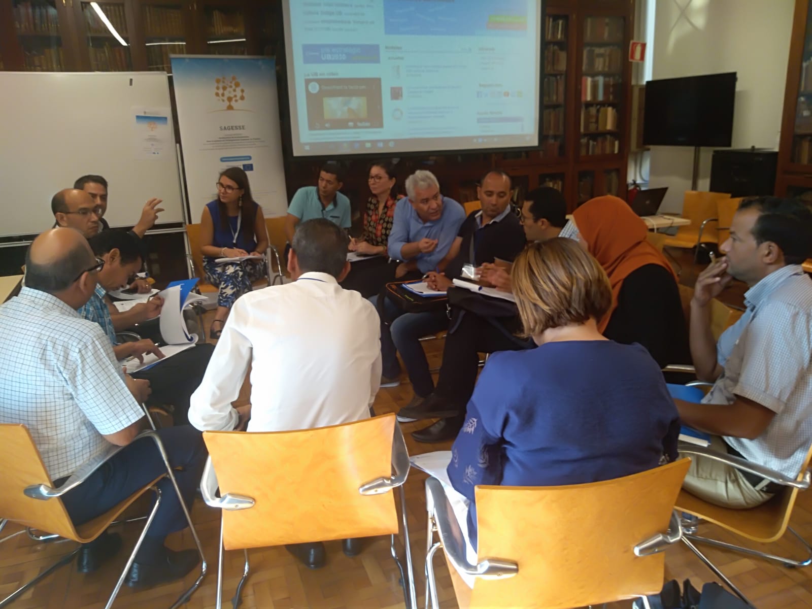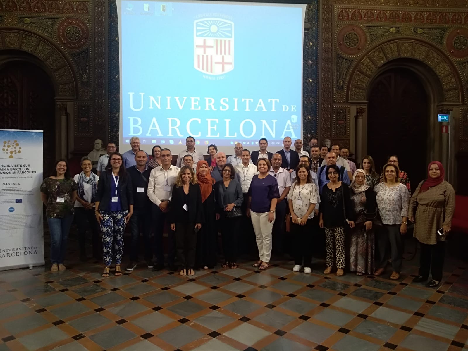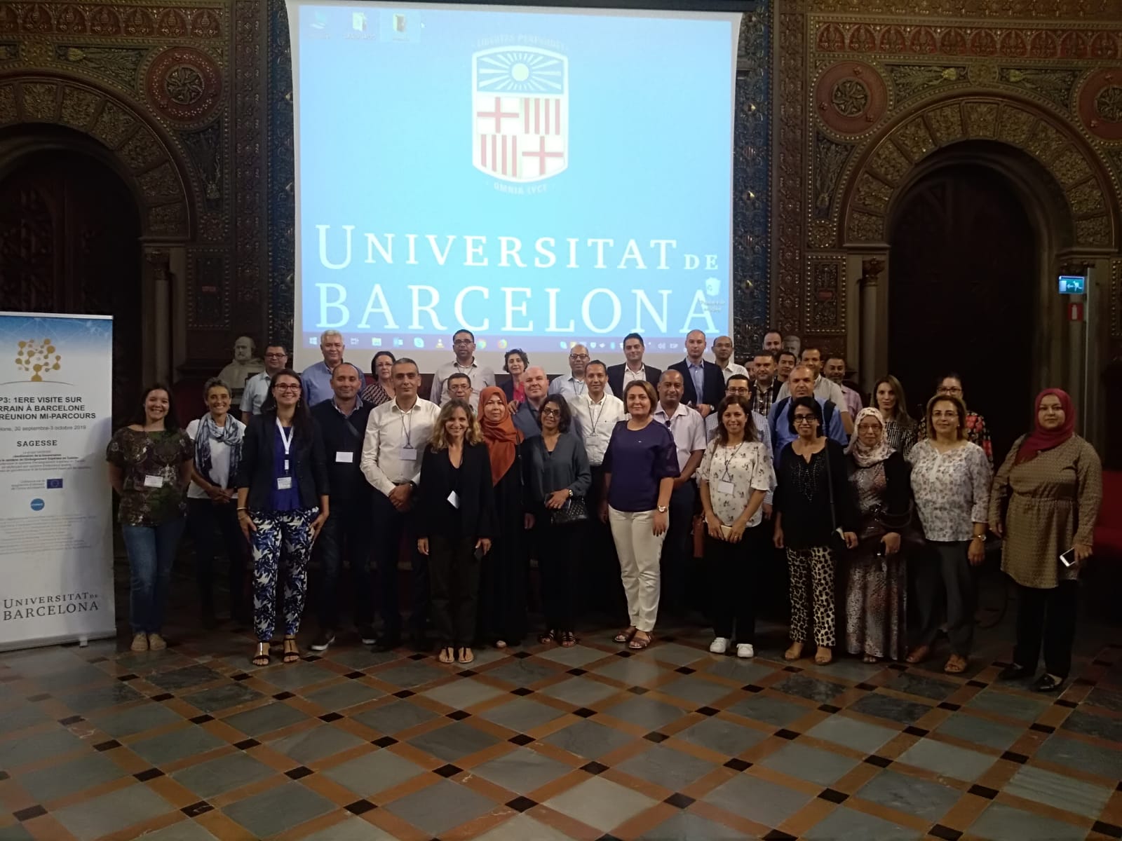 In the framework of the SAGESSE project and in particular the work concerning the modernization of the communication and information system with the use of ICTs and the development of a e-administration unit for a good financial and technical management, 33 directors and deputy directors on financial management and information systems managers of the 13 Tunisian universities, together with the Ministry and IEAQA (National Tunisian Agency on Quality Assurance and Accreditation) traveled to Barcelona to take part in the first field visit to the University of Barcelona, which focused on governance and financial management as well as data management of the information system.