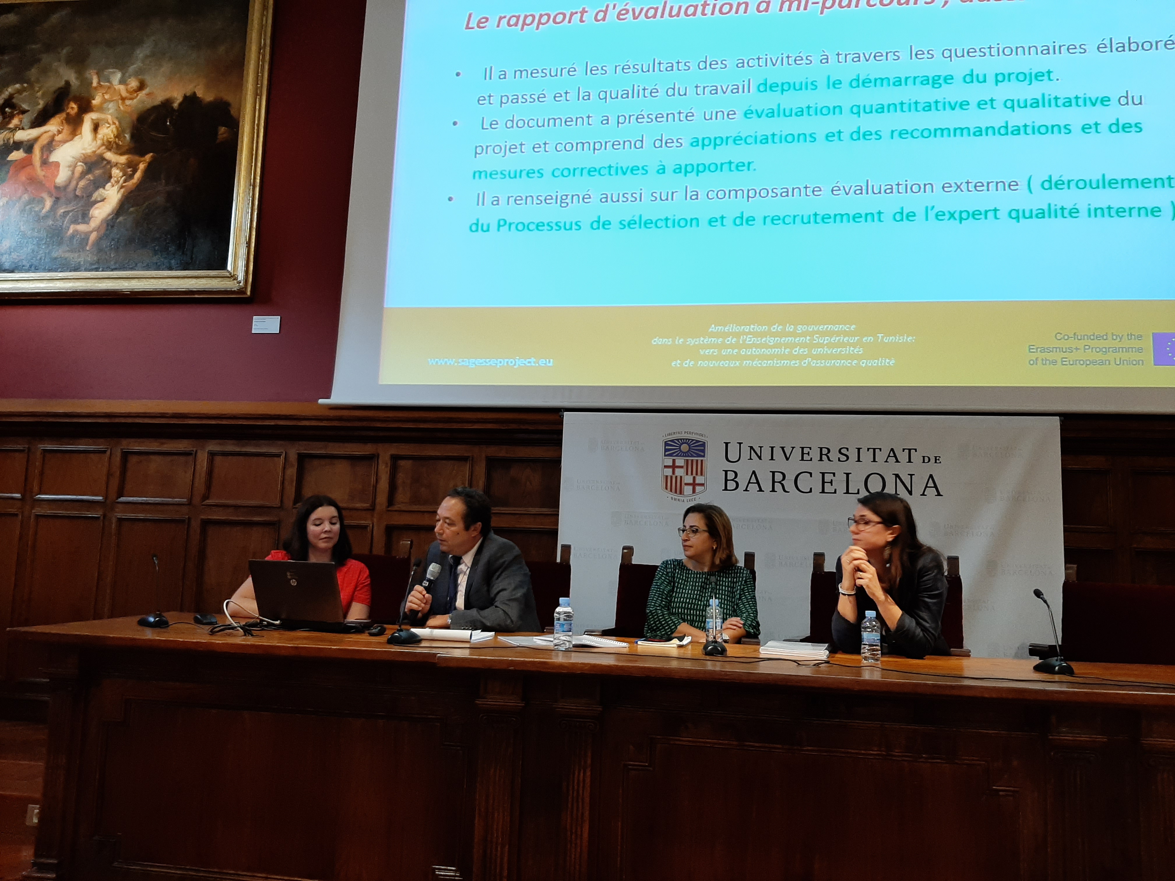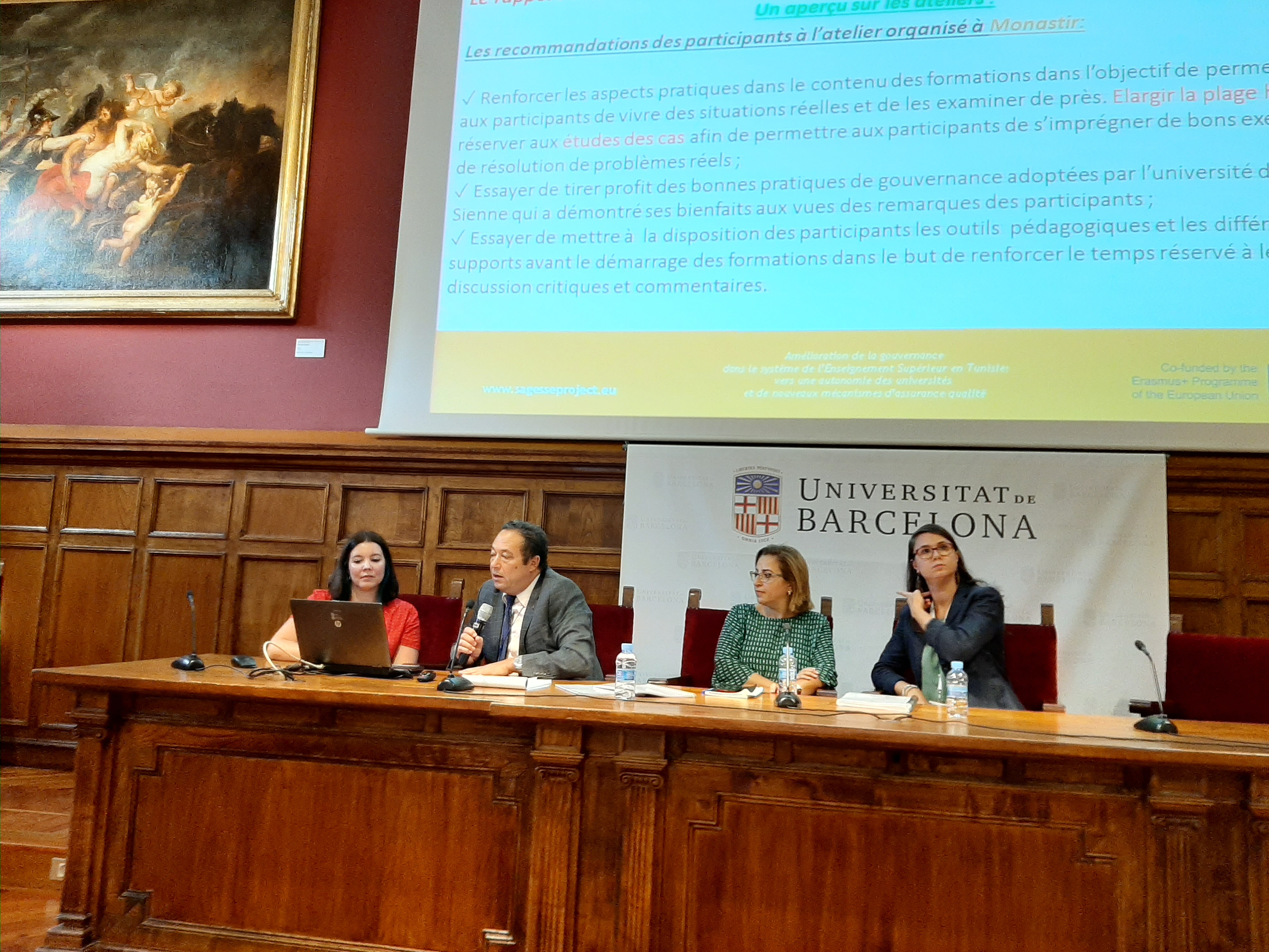 A third mid-term meeting of the project was also held in the same week in Barcelona on 2-3 October, which had the objective of being updated as a partnership, on the progress of the project activities, thus to define a whole series of actions to start for the next year and to start thinking about the durability of the project and the future of the achievements of the project. The objective of this working meeting was also to reflect together on how the work planned by SAGESSE can really support the reform process initiated by the Ministry for strengthening the governance of Tunisian universities.
