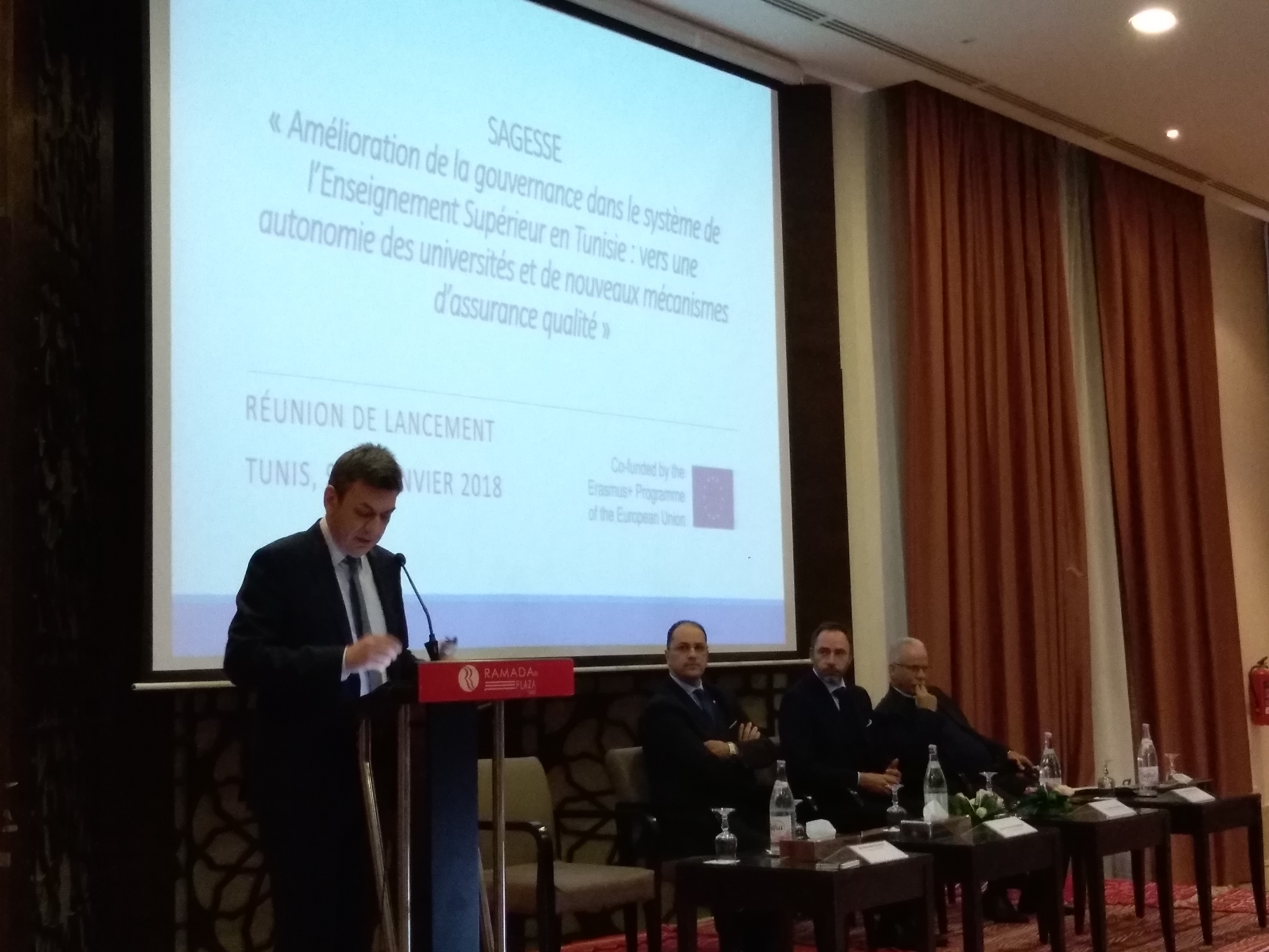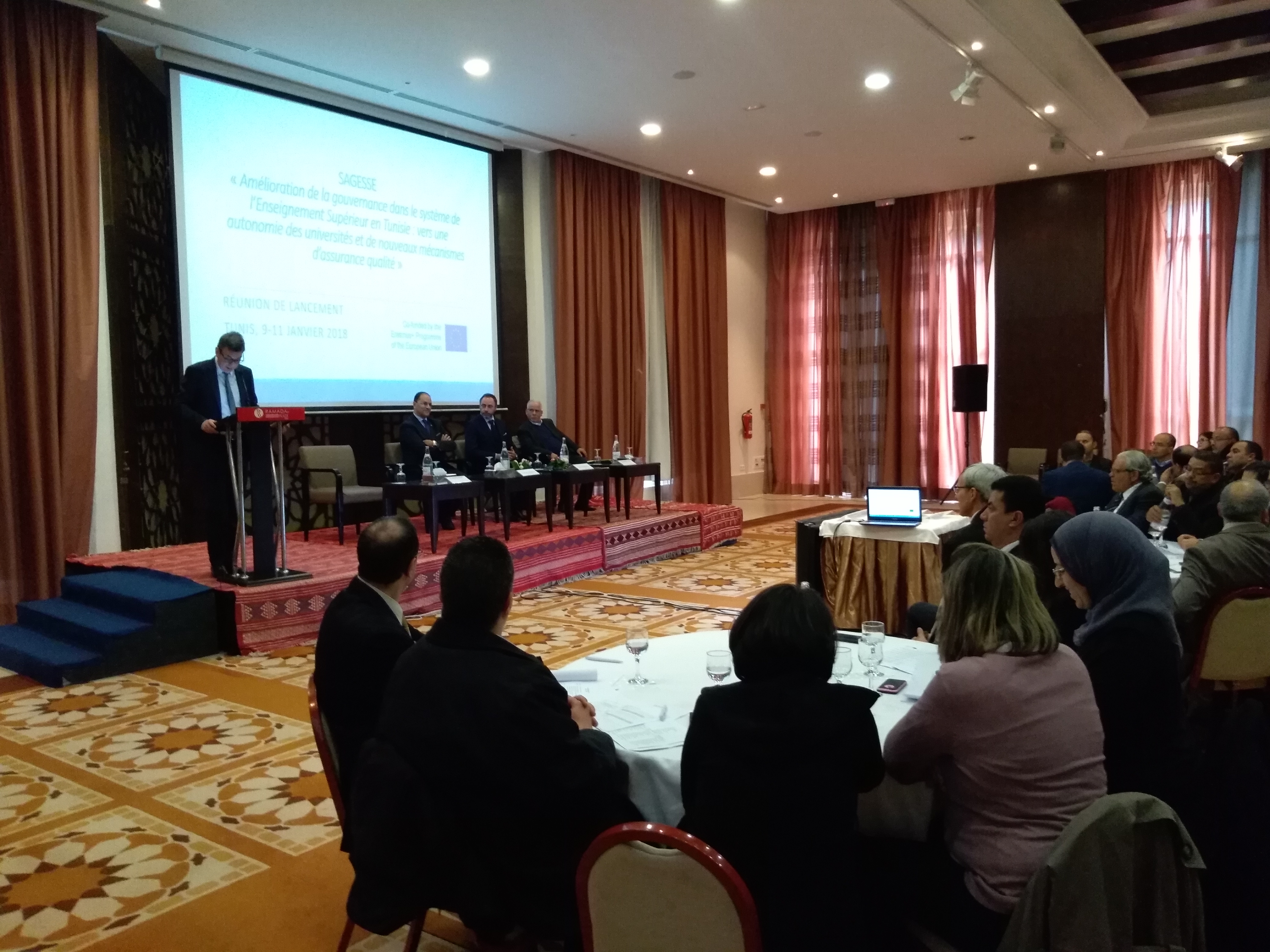 On the 9, 10 and 11 of January in Tunis, the Tunisian Ministry of Higher Education and Scientific Research, together with the Mediterranean Universities Unions – UNIMED, organized the kick-off meeting of the SAGESSE Project “L’amélioration de la gouvernance dans le système d’enseignement supérieur en Tunisie: vers une autonomie des universités et de nouveaux mécanismes d’assurance qualité” as part of the support of the European Union to the global reform of Tunisian Universities. The project is funded by the European Commission under the Erasmus+ Programme under the Key Action “Capacity Building in the field of Higher Education”. This 3 year-long project, coordinated by UNIMED, aims to modernize Tunisia’s higher education system by strengthening its quality assurance system, governance and funding mechanisms based on the results. By promoting the autonomy of universities in the field of human resources, academia and most of all finance, the project will also contribute to improve the employability of graduates and promote innovation and research.