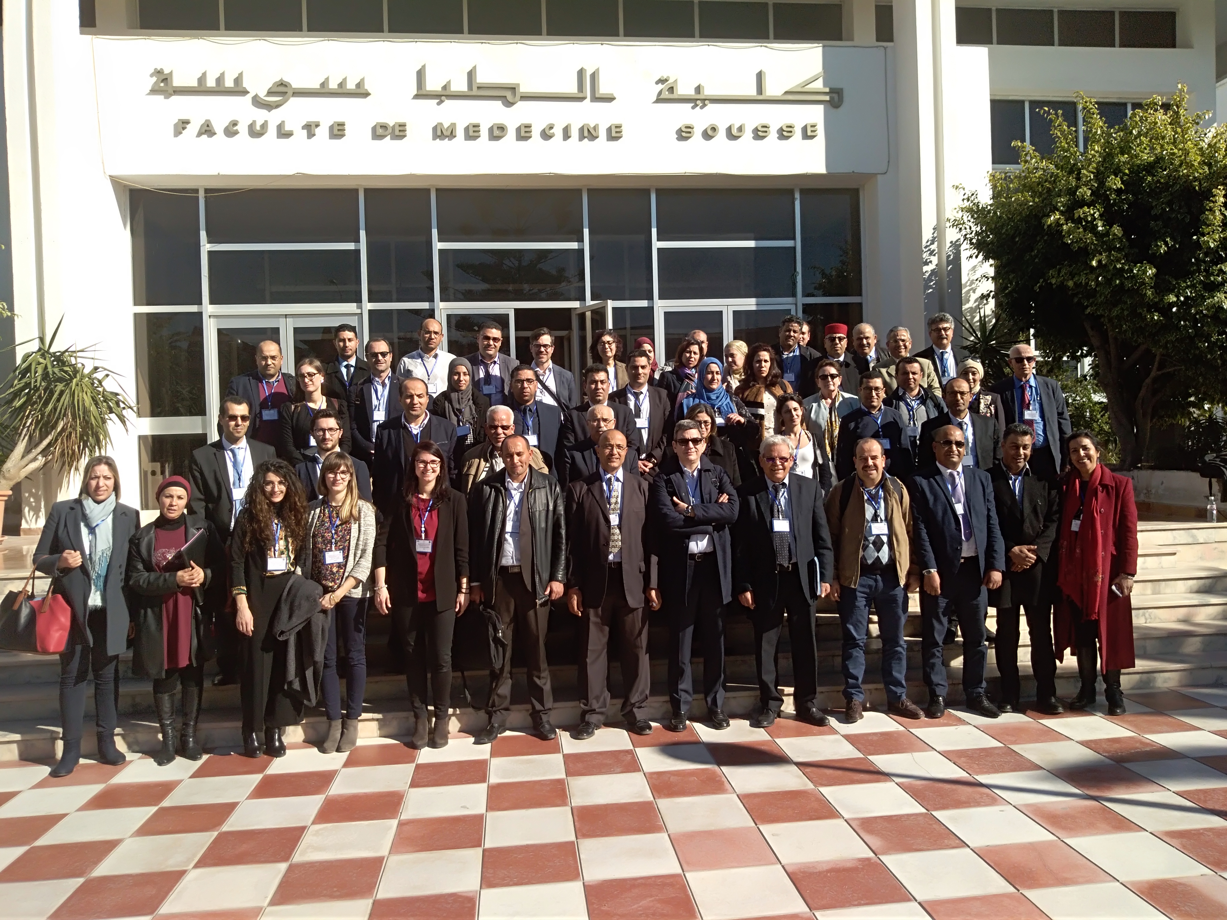 Les 5 et 6 mars 2019, à Sousse (Tunisie), le président de l’Université de Sousse, prof. Ali Mtiraoui, le vice-doyen de la faculté de médecine, prof. Olfa Bouallègue, le directeur de la division de la coopération internationale du ministère de l’Enseignement supérieur et de la Recherche scientifique en Tunisie, prof. Ben Ammara, le coordinateur du bureau national Erasmus Plus, prof. Adel Alimi, le secrétaire général de l’UNIMED, prof. Hmaid Ben Aziza et le directeur de l’UNIMED, M. Marcello Scalisi, ont accueilli 60 participants tunisiens (des 13 universités publiques, du ministère de l’Enseignement supérieur et de la Recherche scientifique et de l’Agence tunisienne d’assurance de la qualité et de l’évaluation) et des partenaires européennes (de l’Université de Sienne, de l’Université Sapienza de Rome, de l’Université de Barcelone, de Paris 1 Panthéon Sorbonne et CESIE) pour la 2e réunion de gestion à mi-parcours du projet SAGESSE, coordonné par l’UNIMED.