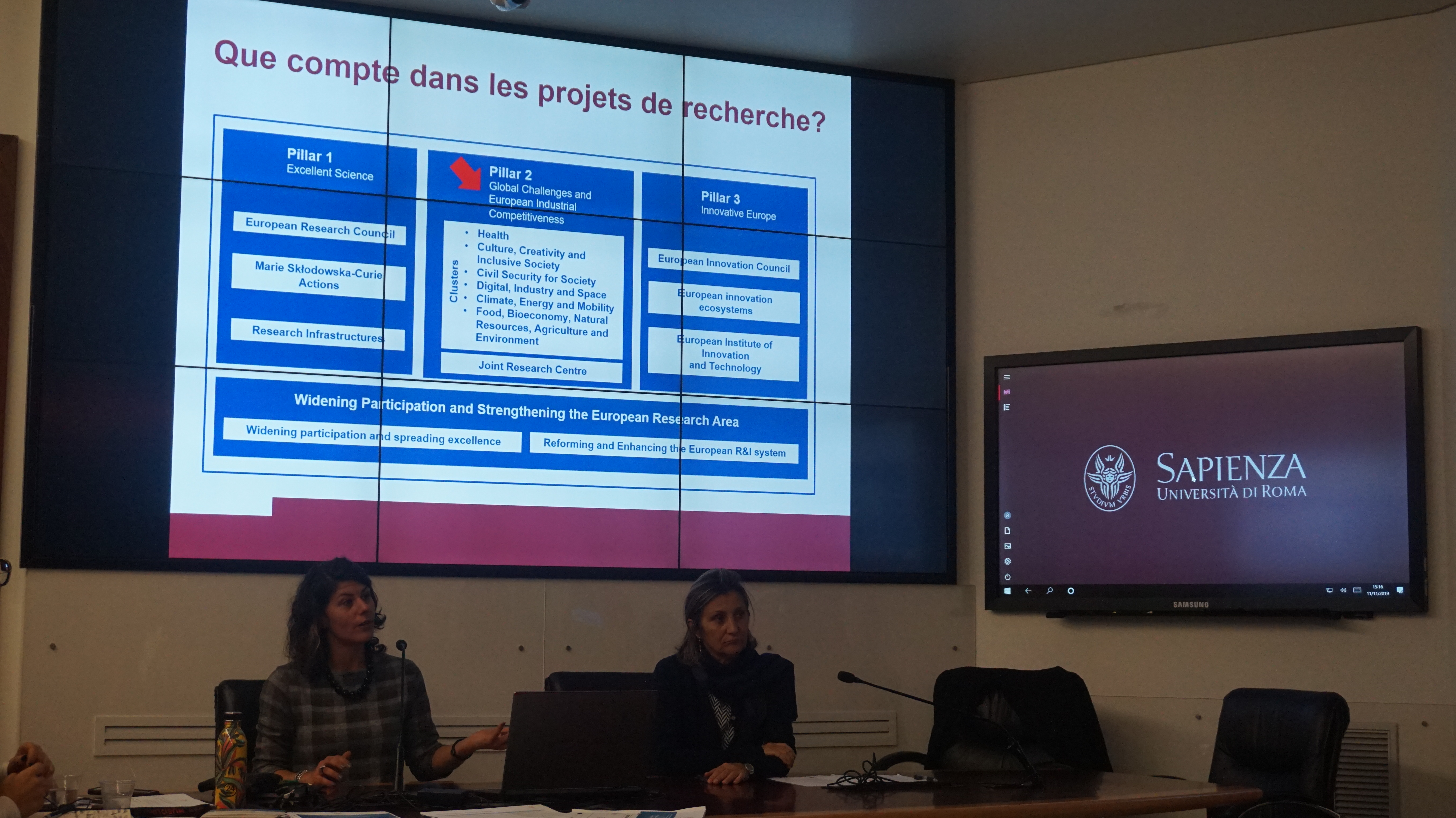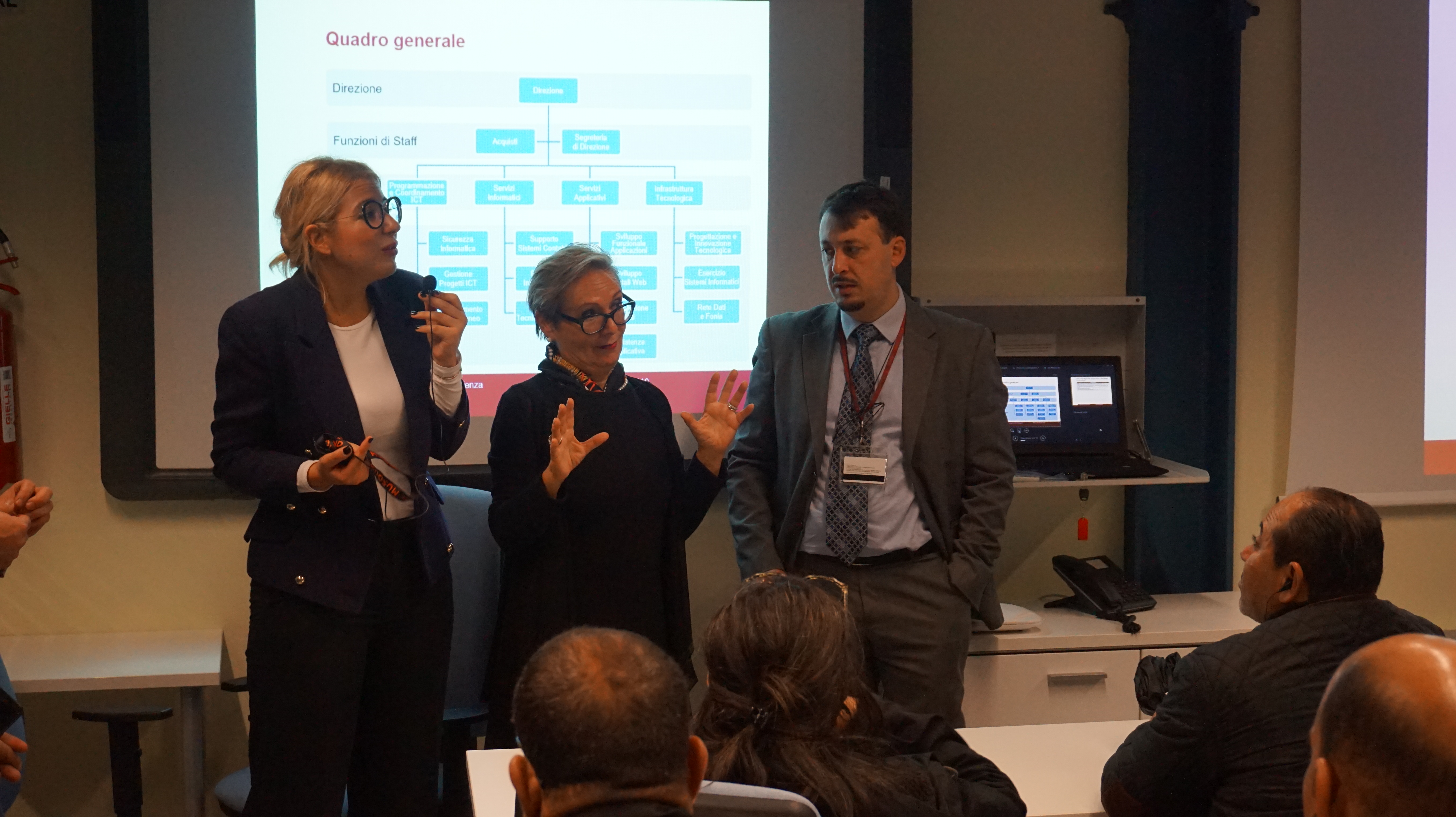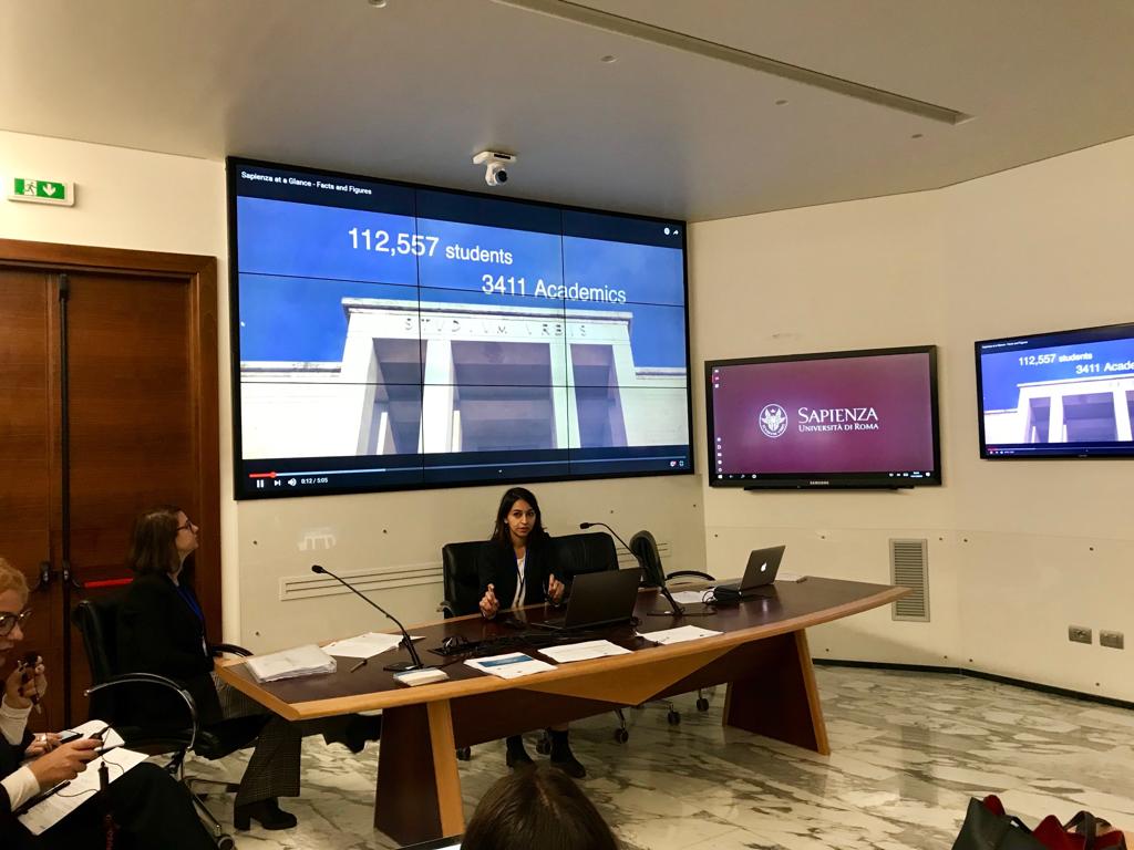 En outre, les activités de recherche et d’internationalisation de l'université ont été présentées. En effet, l’idée de cette visite était de présenter le cas de l’Université d’accueil, l’Université Sapienza de Rome, en mettant l’accent sur les aspects de la mise en œuvre des stratégies et les problèmes de gestion rencontrés, ainsi que sur les mécanismes institutionnels pour les résoudre sur le terrain du système d’information et de communication.