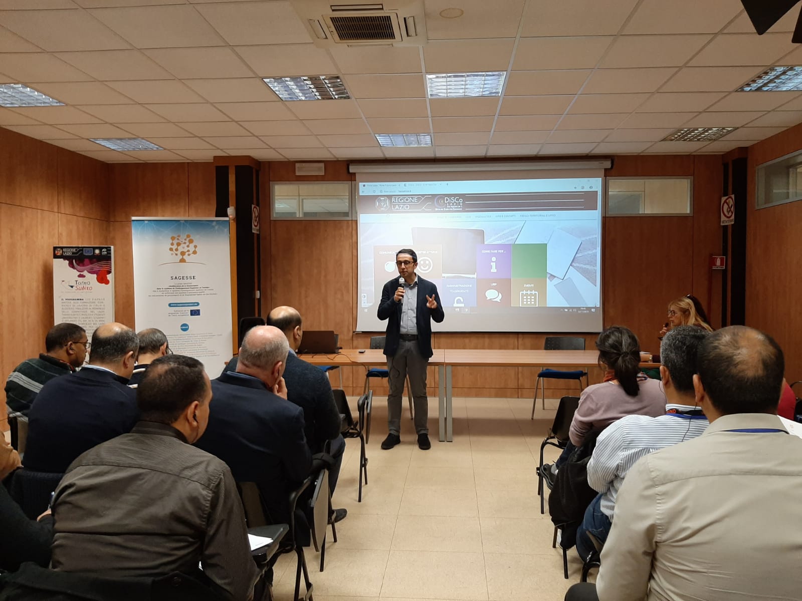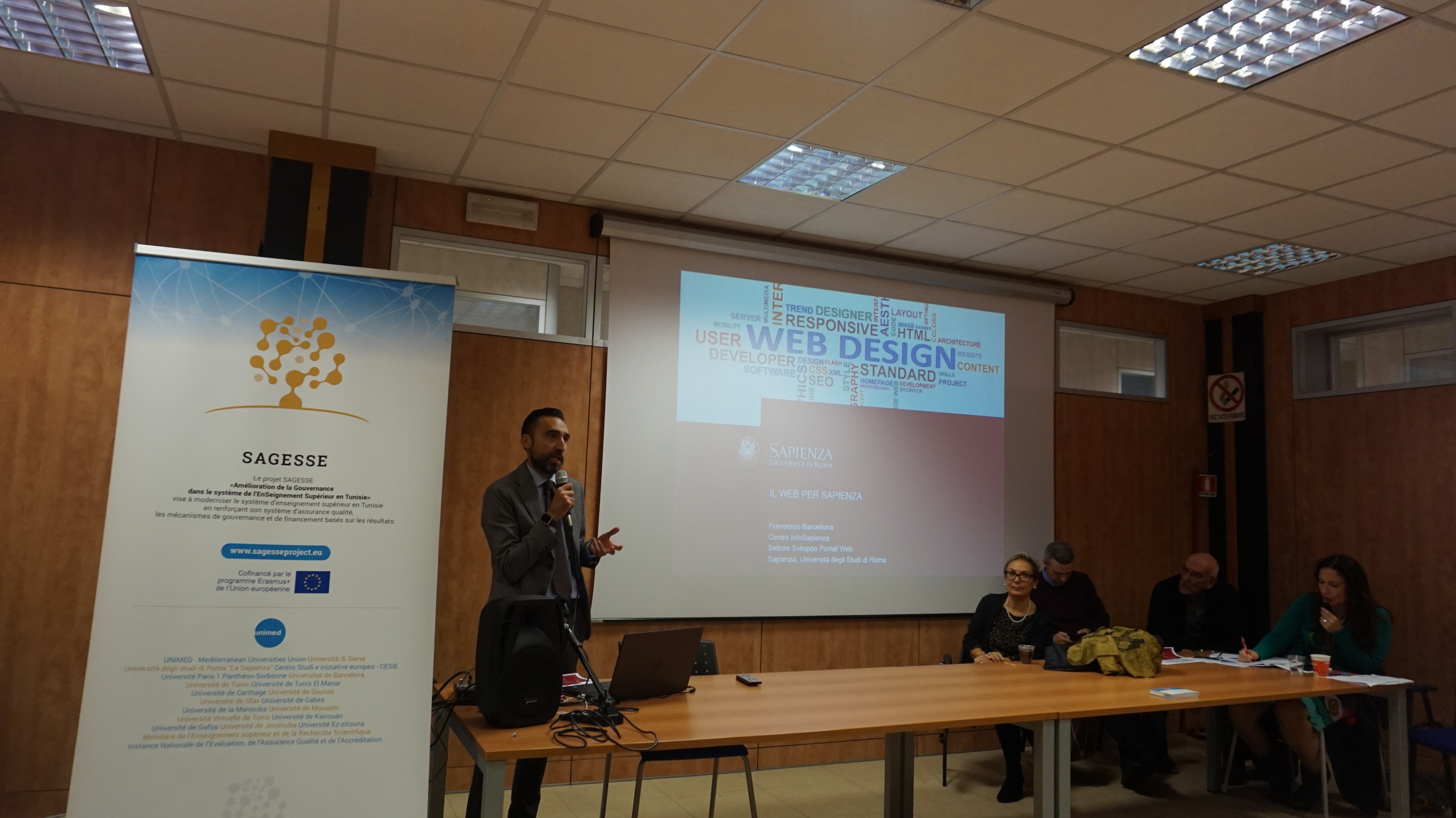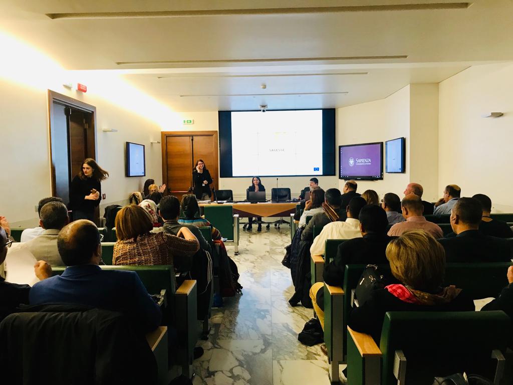 Dans le cadre du projet SAGESSE, une visite de terrain a été organisée à Rome par l’Université Sapienza. L’ordre du jour était axé sur la modernisation du système de communication et d’information avec l’utilisation des TIC et sur la mise en place d’une unité d’administration en ligne permettant une bonne gestion financière et technique. À cette occasion, toutes les universités partenaires tunisiennes ainsi que le ministère tunisien de l’Enseignement supérieur et l’AIEQA (Agence nationale tunisienne d’assurance qualité et d’accréditation) ont pris part à l'événement.